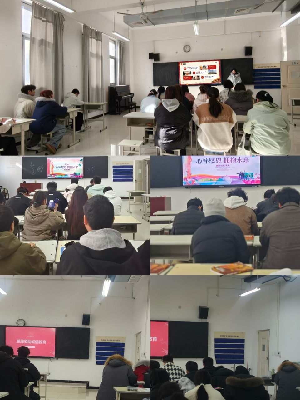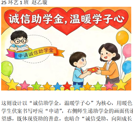 活动前期,全院各班级积极组织学生参与感恩创意海报创作。同学们围绕“感恩”与“诚信”核心主题,结合自身对资助政策的理解,以画笔绘心声、以创意传理念,将资助政策要点、诚信履约要求与感恩情怀融入海报设计中。一张张色彩鲜明、构思巧妙的海报,不仅展现了同学们的艺术创意,更让大家在创作过程中深化了对主题的认知。
